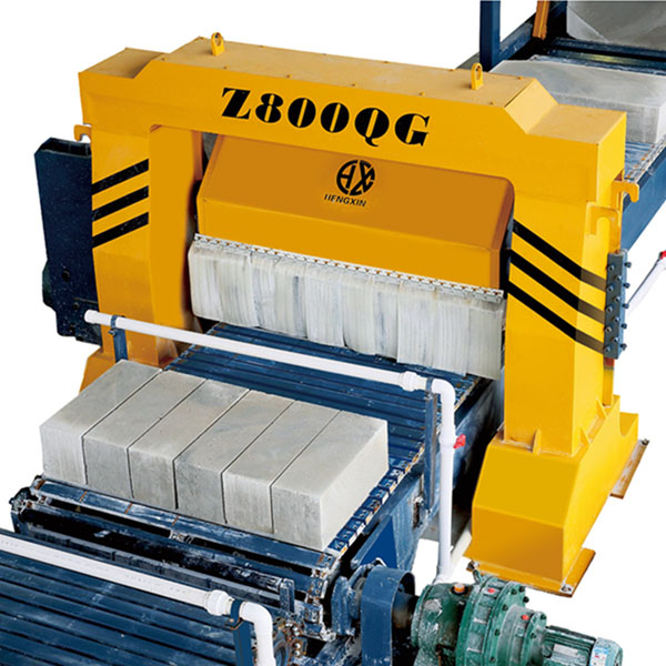 泡沫混凝土砌塊切割機(jī)是發(fā)泡混凝土砌塊生產(chǎn)線最重要的設(shè)備之一。脫模好的坯體通過切割輸送機(jī)送到切割機(jī)生產(chǎn)線進(jìn)行成品切割。切割時(shí)將整塊毛坯(2.88立方)分割成三塊適合成品流水線切割機(jī)的切割尺寸。然后毛坯翻轉(zhuǎn)吊具將分塊切割好的坯體進(jìn)行橫向旋轉(zhuǎn),吊運(yùn)到成品切割區(qū)進(jìn)行成品切割。
